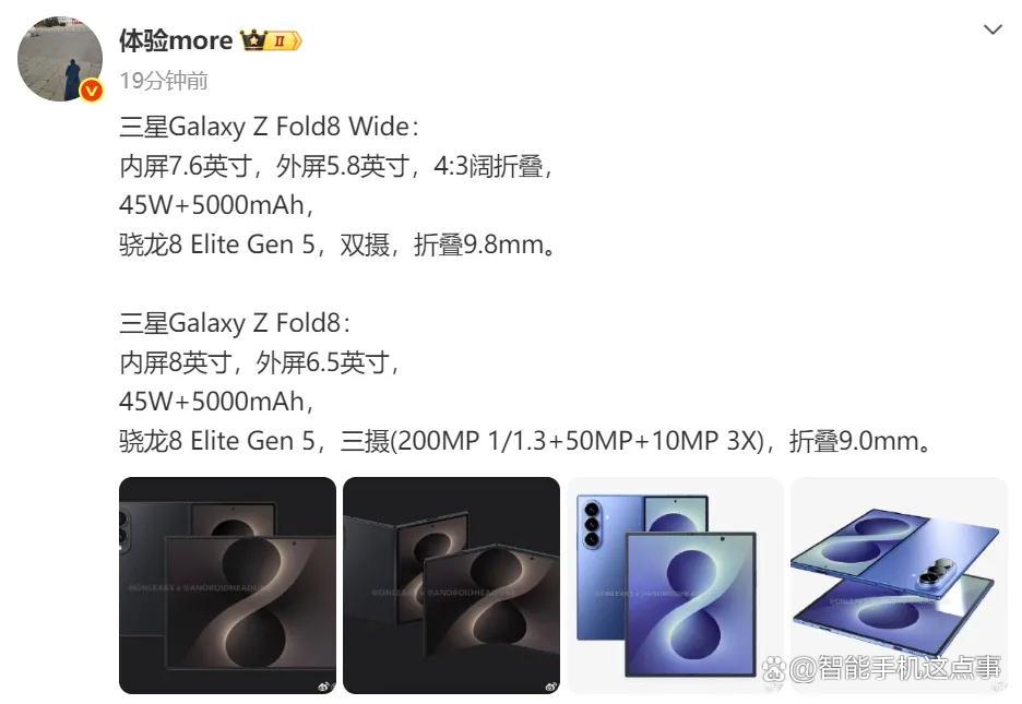 这个尺寸选择很有意思,因为有消息称iPhone Fold的外屏是5.5英寸、内屏7.8英寸,Z Fold8 Wide的5.8+7.6跟它非常接近。